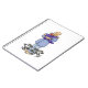 A journal or notebook for new parents featuring a funny front cover illustration of a dad with a crying baby standing in a patch of flowers.