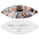 New dad fathers day football gift featuring a photo collage of 12 family pictures for you to replace with your own, the message "happy first father's day", a modern saying that reads "some men are born fathers, and that someone is you!", with a cute blue heart, and your childs name.