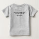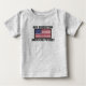 This patriotic baby t-shirt shows an American Flag with the words NEW GENERATION AMERICAN PATRIOT above and below the flag. The words on the back say, "I'll Never Forget Your Sacrifices for Me Thank You."