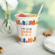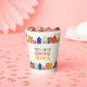 New Grad On The Block graduation party theme featuring border of houses at top and bottom with text at centre. Graduation's name and graduation cap illustration on back.