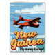 New Guinea adventure poster. A vintage style prop plane cartoons tyle vacation print.