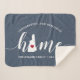 Show some home state pride with this cute rustic blue throw blanket featuring "home" in white calligraphy script lettering with a silhouette map of the state of New Hampshire standing in for the letter "O." A red heart illustration inside the state map completes the design; you can change the position of the heart to your home city by opening the design tool and dragging the heart shape to your favourite spot. Personalise with your home city, family name and year established to create a perfect and memorable housewarming gift or addition to your new home.
