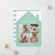 Let your family and friends know you're moving to your new home and how they can keep in touch with our multiple photo collage moving announcement card. The design features a simple house shape design in a modern turquoise colour. Display your family's special memory photos in the four photo collage design, representing the windows of the home. Personalise with your family name, address and contact information. The reverse side is designed in a simple stripe design to match the colour of the home.