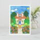 A New Home Announcement Card with a pretty cottage and garden, from a handpainted paper collage by Judy Adamson. Please contact me through my store if you would like the front text changed and the reverse side is left blank for you to add your new address and contact details.