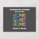 Congratulating a couple or individual on their new home with colourful "Home Sweet Home" text. Other text can be easily changed.