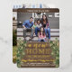 There's no place like a new home for the holidays! Share the joyful news of your new address as well as two of your favourite photos with an elegant custom holiday moving announcement card. All text on this template is simple to personalise to include any wording, such as Merry Christmas, Happy Holidays, Seasons Greetings, Cheers to the New Year etc. (IMAGE PLACEMENT TIP: An easy way to centre a photo exactly how you want is to crop it before uploading to the Zazzle website.) Front side of card is printed with real metallic gold foil on a rustic brown faux wood background. The modern farmhouse style design also features festive watercolor pine greenery with string lights, vintage handwritten style script typography, and 2 pictures of your choice. Family and friends will love displaying this elegant personalised change of address card.