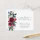 Christmas seasonal floral red burgundy and dark hunter green bouquet with holly berries and seasonal foliage family greetings postcard from a new home, making an elegant rustic modern holiday moving announcement postcard. ++++++++ Easy to personalise with your family name, new address, and wishes on both sides!