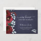 Winter chic modern floral Christmas holiday moving announcement postcard featuring burgundy flowers with light grey foliage border and a trendy elegant handwriting dark burgundy typography script over a dark navy blue chalkboard background.++++++++++++++ Easy to personalise with your text, new address and signature!