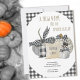 Halloween themed moving announcement. Say happy halloween and let everyone know your new address at the same time. Rustic farmhouse design with country pumpkins, buffalo plaid, porch pillows, spooky pumpkin with creepy crawly spider and ribbon bows. Announcement is titled, A New Home for the Spooky Season and you can personalise the pillow and the remaining wording.