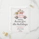 Inform for family and friends and say happy holidays on the same card with our "New Home for the holidays" postcard. The design features a vintage car with a christmas tree and gifts on the roof. Personalise with your information front and back.