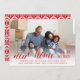 Festive holiday photo card announces your change of address with "new home for the holidays" as a vibrant red text overlay. Personalise with a family photo, your new address, custom greeting and names. Cards reverse to a Nordic sweater pattern in white on red.