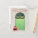 This Christmas holiday design features green double doors with a palladium topped window for a new home for the holidays message. There is evergreen garland below the window and a gift filled Santa bag on the steps. Personalise the text on the front and back, remove any text or click customise to select a different font style, size, and colour.