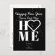 A modern New Home Sweet Home moving announcement card. Featuring a heart shape and "Happy New Year From our New Home" title in hand-written calligraphy typography. Personalised with your message of preference front and back, your new address, and signature