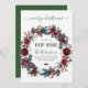 Traditional Christmas seasonal floral wreath with holly berries and fir branches Merry Christmas family greetings card from a new home, making an elegant rustic modern holiday hunter green moving announcement card. ++++++++ Easy to personalise with your family name, new address, and wishes!
