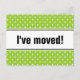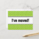 New home moving postcards | apple green polkadots. Custom moving text; We have moved! Add your new address on the back. Modern moving cards for home and business.