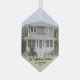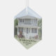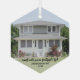 Celebrate the joy of your new place with a custom photo "First Christmas in our New Home" hexagon-shaped glass ornament. Picture and all wording on this template are simple to personalize. The modern minimalist black and white overlay design features one image of your choice and a handwritten style script typography message, name and year. This unique family keepsake adds an elegant touch to Xmas home decorations or makes a thoughtful housewarming realtor gift idea. There's no place like a new home for the holidays!