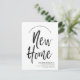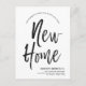 A minimal black and white script-style moving announcement postcard. It features a large script text of the words "New Home" followed by your address information below it. Most individual elements of the invite card are unlocked so feel free to change or add any details necessary by using the customisation function. You can even add a photo to the reverse side and add a black and white filter to it if you please instead of a message.