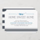 Modern and stylish housewarming party invitation features "New Home Sweet Home" in smoky navy and lagoon blue typography, with a striped border in dusty navy blue. Personalise with your party details in matching navy and lagoon lettering.