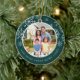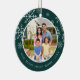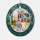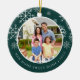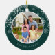 Festive photo Christmas ornament commemorates your new home for the holidays with a photo on either side, framed by white snowflakes on rich forest green. Personalise with a custom caption on each side; shown with "New Home Sweet Home" on front and your names and the year on the back.