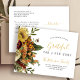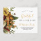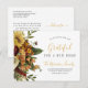 Modern simple elegant Thanksgiving family moving announcement postcard featuring a beautiful autumn fall floral botanicals bouquet and a gold chic typography script on a white background.
