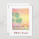 Moved to a new home postcard with a colourful tropical beach sunset image and an elegant script typography design. With red customisable lettering, you can add your own information. Great for letting everyone know about your new location.