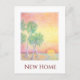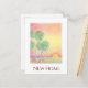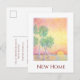 Moved to a new home postcard with a colourful tropical beach sunset image and an elegant script typography design. With red customisable lettering, you can add your own information. Great for letting everyone know about your new location.