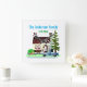 Decorate the walls of your home with this family name clock. This clock features a cute home design with a house, flower pots, tree, truck, and the family cat. Also, This wall clock would be a thoughtful housewarming gift for that special someone.