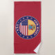 Badge of New Jersey with flag of New Jersey and flag of USA colours, rounded shape.