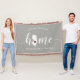 Show some home state pride with this cute rustic grey throw blanket featuring "home" in white calligraphy script lettering with a silhouette map of the state of New Jersey standing in for the letter "O." A red heart illustration inside the state map completes the design; you can change the position of the heart to your home city by opening the design tool and dragging the heart shape to your favourite spot. Personalise with your home city, family name and year established to create a perfect and memorable housewarming gift or addition to your new home.