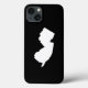 The shape of the state of New Jersey in black and white. You can change the background colour or add a custom souvenir text message.