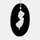 The shape of the state of New Jersey in black and white. You can change the background colour or add a custom souvenir text message.