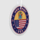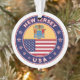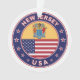 Badge of New Jersey with flag of New Jersey and flag of USA colours, rounded shape.