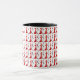 New Jersey Red and Black Ringer Mug features repeated state outline image bordered in red with black handle and rim. Ideal for New Jersey buffs.