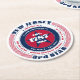 This paper coaster has a patriotic circular typography design with red, white, and blue colours representing the United States of America flag. The text includes the state's name, New Jersey, its capital, Trenton, its residents' name, New Jerseyans, its region, Mid-Atlantic, its time zone(s), and geographic coordinates. New Jersey was the 3rd state to gain its statehood in 1787. It is represented with text as the "3rd star" in this design. This paper coaster is great as a souvenir or for parties and businesses. All shape options are available. However, you may need to adjust the design size in the design tool to make it fit correctly.
