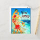 Postcard featuring the image from a vintage poster for the New Jersey seashore with a mother and two children at the seashore.