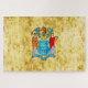 Artistic rendering of the New Jersey state flag with grunge texture effects.