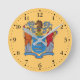 The clock did not take as long to arrive as I thought it might and was extremely well packaged. I didn't do the measurements so I didn't realize it is a little smaller than the average clock but that does not matter (just make sure you check if that's important to you).It is really nifty! It seems very solid and well made not flimsy at all. It has been going well and has kept good time in its few weeks on my wall. Nice product. Gets noticed too! Nicer in real life than the picture but true to the picture