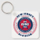 The New Jersey State Keychain has a circular typography design with red, white, and blue colours on a white background. The text includes the state's name, capital, state abbreviation, resident's name, region, time zone, geographic coordinates, the year of its statehood, and the country - The United States of America. Unique patriotic gift idea.