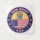 Badge of New Jersey with flag of New Jersey and flag of USA colours, rounded shape.