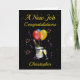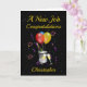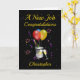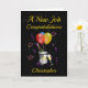 Stylish new job congratulation card. This bright greeting card features a champagne bucket glasses and balloons. Great to give to family and friends to congratulate them on a new job or another celebration. Can be customise by amending the titles then personalise by amending the name and the inside congratulation message which currently reads " Wishing you all the best for the future, with best wishes."