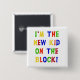 Primary colours text reads "New Kid on the Block" on new kid t-shirts, bodysuits, tote bags, stickers, cards, and more.
