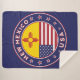Badge of New Mexico State with flag of New Mexico State and flag of USA colours, rounded shape.