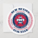 A bold, patriotic design featuring red, white, and blue evokes feelings of freedom, loyalty, and unity. The state name, "New Mexico," is prominently displayed, surrounded by information about the capital, residents, region, time zone, and geographic coordinates. The backside is blank - leave it as is or add your text by accessing the design tool. Perfect for national holidays and patriotic events.
