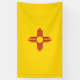This design features the flag of the state of New Mexico, which is in the Southwestern region of the United States. The flag consists a stylised red sun, a symbol used by the indigenous Zia people, on a field of yellow. It was officially introduced in 1925, having been designed in 1920 to celebrate the state's Native American Pueblo and Nuevo México Hispanic roots. The colours evoke the flags of Habsburg Spain (the Cross of Burgundy) and the Crown of Aragon, brought by the conquistadors. The capital city of New Mexico is Santa Fe. Other major cities in New Mexico include Las Cruces, Rio Rancho, Roswell, Farmington, Clovis, Hobbs, Alamogordo and Carlsbad.