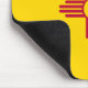This design features the flag of the state of New Mexico, which is in the Southwestern region of the United States. The flag consists a stylised red sun, a symbol used by the indigenous Zia people, on a field of yellow. It was officially introduced in 1925, having been designed in 1920 to celebrate the state's Native American Pueblo and Nuevo México Hispanic roots. The colours evoke the flags of Habsburg Spain (the Cross of Burgundy) and the Crown of Aragon, brought by the conquistadors. The capital city of New Mexico is Santa Fe. Other major cities in New Mexico include Las Cruces, Rio Rancho, Roswell, Farmington, Clovis, Hobbs, Alamogordo and Carlsbad.