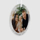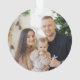 New modern style, double sided, two photo, round acrylic ornament. On the front side, this custom ornament design features your personal photo highlighted in a unique delicate white gradient frame. The designs modern typography displays your family name and the year or can be edited to read anything you like. The text is in a warm bronze colour which also can be easily edited to any colour of your choosing. The back of the ornament fully displays your second photo. The perfect keepsake gift and tree décor for the holidays & Christmas.