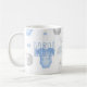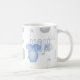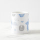 Created for a first time mum of a baby boy and with a baby hat, pacifier, bottle, socks, etc., this mug comes with the option to personalise it. The name will show on the grey baby bib. The main colours for this mug are shades of light blue, grey, and white.