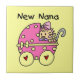 An adorable design featuring a baby girl in a pink carriage on New Nana keepsake boxes, tiles, ornaments, notebooks, mugs, cards, stickers, tote bags, keychains, magnets, and other New Nana clothing and gifts!