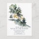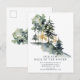 Modern new neck of the woods moving announcement post card featuring watercolor trees on a mountain.