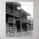 Gallier House, 1132-1134 Royal Street, New Orleans, Orleans County, Louisiana. Old photo of barber poles and balcony ironwork taken between 1930 and 1939 by photographer Frances Benjamin Johnston. Original medium: 8" x 10" safety film negative.